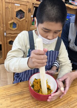 潰していくたびにかぼちゃのいい香りがしますね~😊