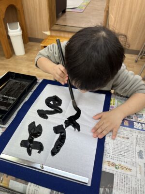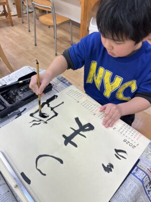 初めて筆で字を書く子もおりみんなワクワクの様子です✨