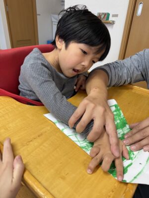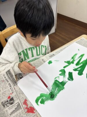 みんな筆で上手に塗る事ができてニコニコ笑顔でした🎶
