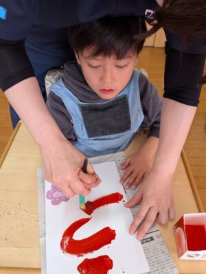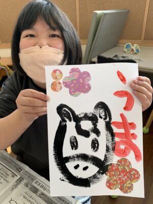 新年最初の活動は書初めを行い、今年の干支「うま」を書きました♪