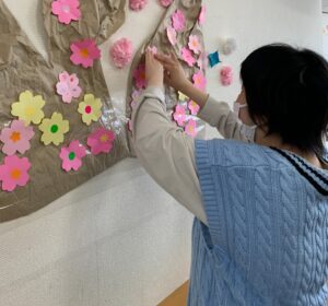 完成したさくらの花は、壁の木に飾ります🎶