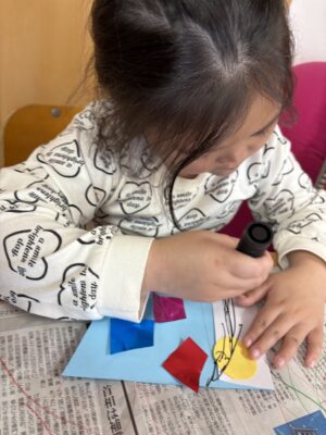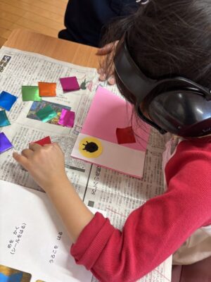 好きな色紙を貼ってウロコを作っていきます🎶