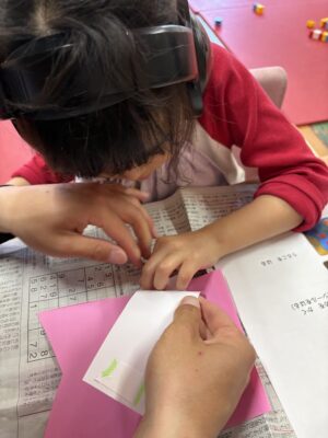 まず、青色かピンクの台紙を選びます🎶