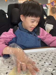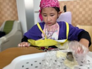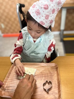 みんなで昼食の準備としてチーズの型抜きをしました!