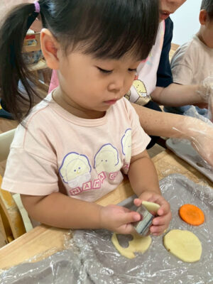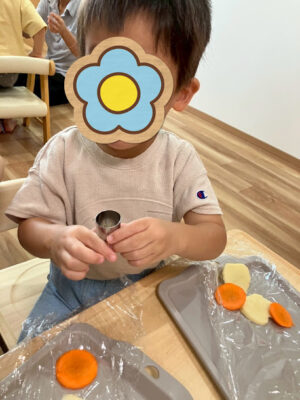 型抜きで、お野菜をハートや星の形に切り抜いて
