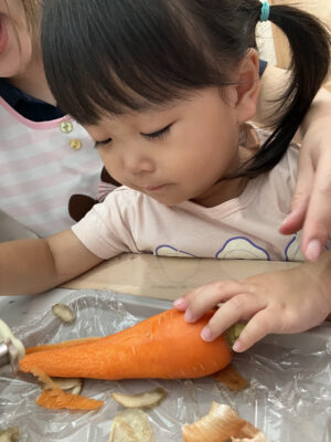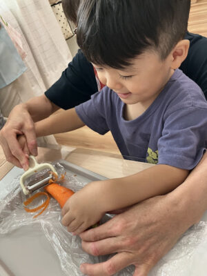 にんじんとじゃがいもをピーラーで皮むきをしました!