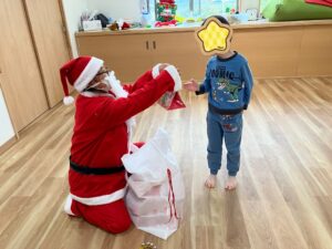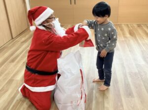サンタさんからお菓子をもらって、