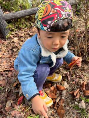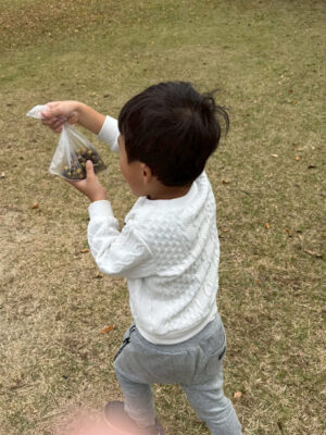 落ち葉やどんぐりを集めて、