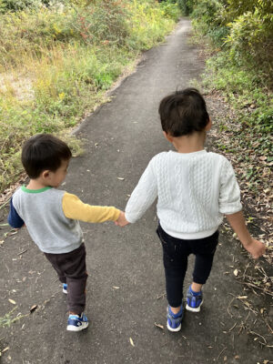 手を繋いで仲良く歩いています🎶